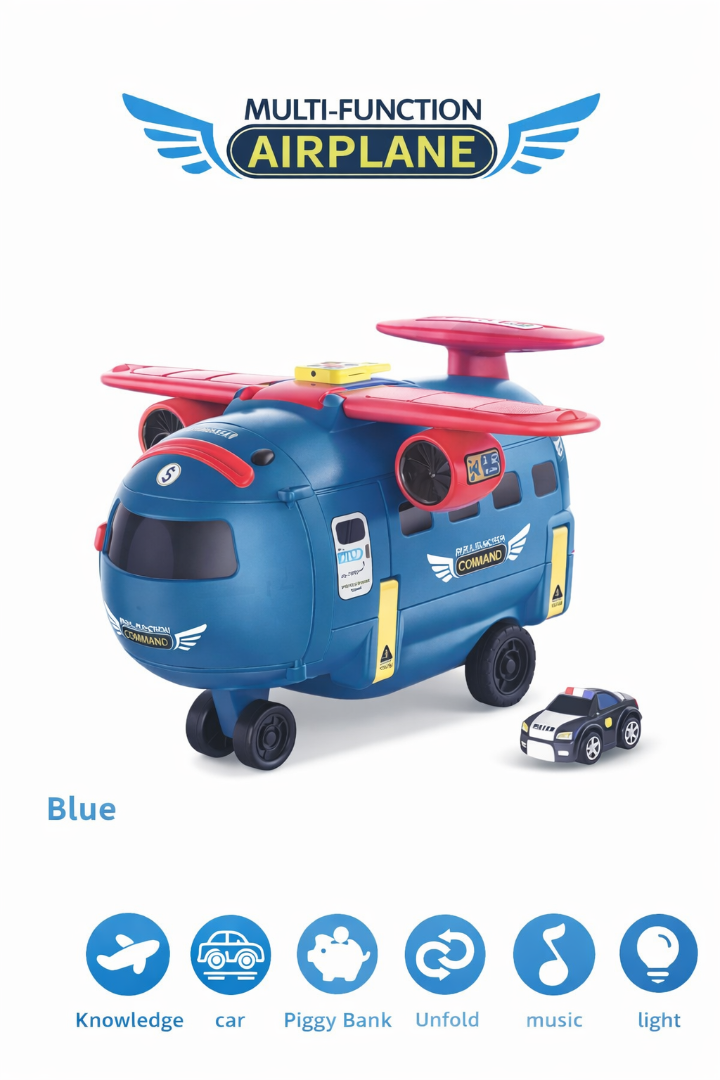 Laat kinderen hun fantasie de vrije loop met dit multifunctionele speelgoed vliegtuig! Dit unieke 3-in-1 speelgoed combineert een vliegtuig, speelset én interactieve functies in één. Perfect voor urenlang speelplezier en leerzame ontdekkingen.